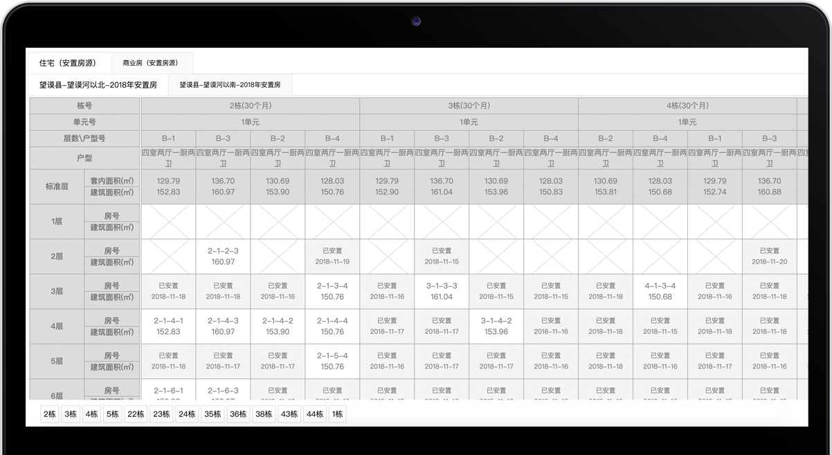 平台全面管理安置房源信息,根据房源类型及房源信息实时掌握最新的房源状态