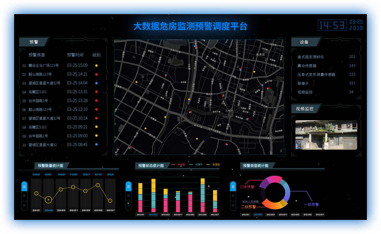 对需要重点关注的危房,采用多种监测设备同时监测 ,实时监测实时预警