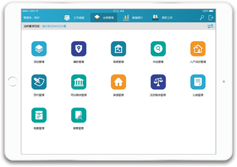 征地拆迁的很多工作要现场入户采集,进行动迁洽谈、协议生成,在政府推行无纸化办公的信息化建设过程中,我们融入了移动办公体系,实行软硬件结合的方式,推动移动办公工作的开展。